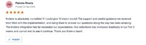 With Kolleno’s centralized dashboard, every single interaction—payment reminders, customer replies, notes from calls, and promises to pay—is now tracked in one intuitive platform. Nothing is lost, overlooked, or siloed. At any moment, Pamela and her team can see a client’s complete communication history, including all outstanding balances, recent emails, and prior agreements.