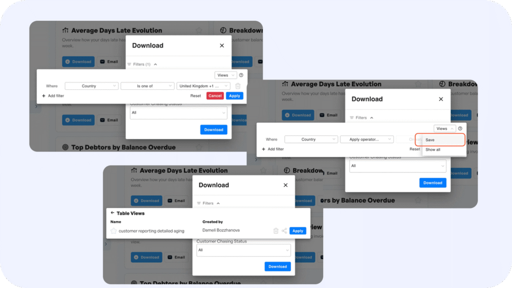 - Save and Share Report Filters: Standardize report filters for quick access and share them across your team for consistency.